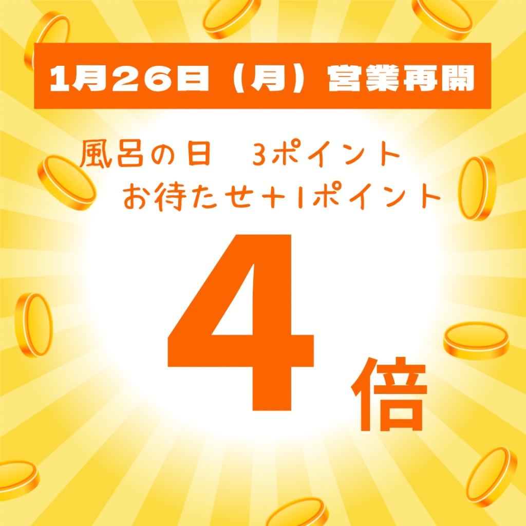 本日 1月26日(月)より営業再開いたします。ポイント4倍でお待ちしております。